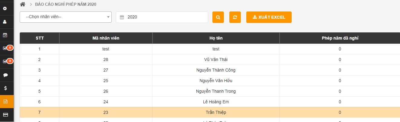 Hiển thị số phép năm đã được sử dụng theo từng nhân viên.