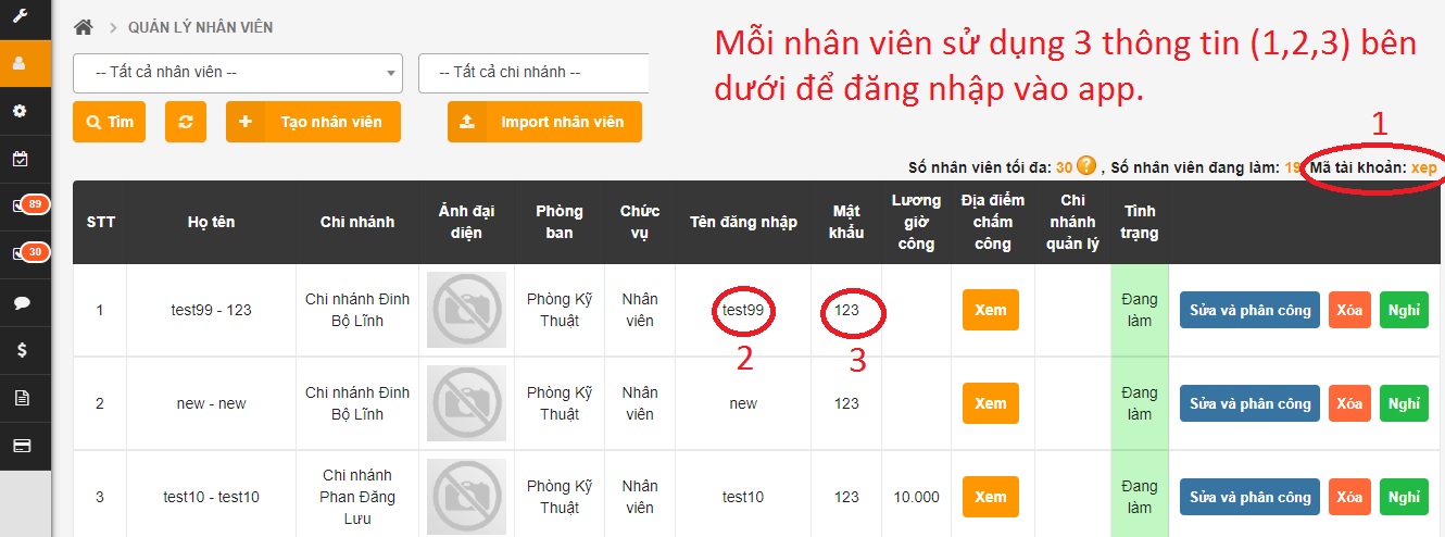 Admin có thể phân quyền quản lý theo chi nhánh cho nhân viên, hoặc có thể cấp quyền admin cho những nhân viên khác.