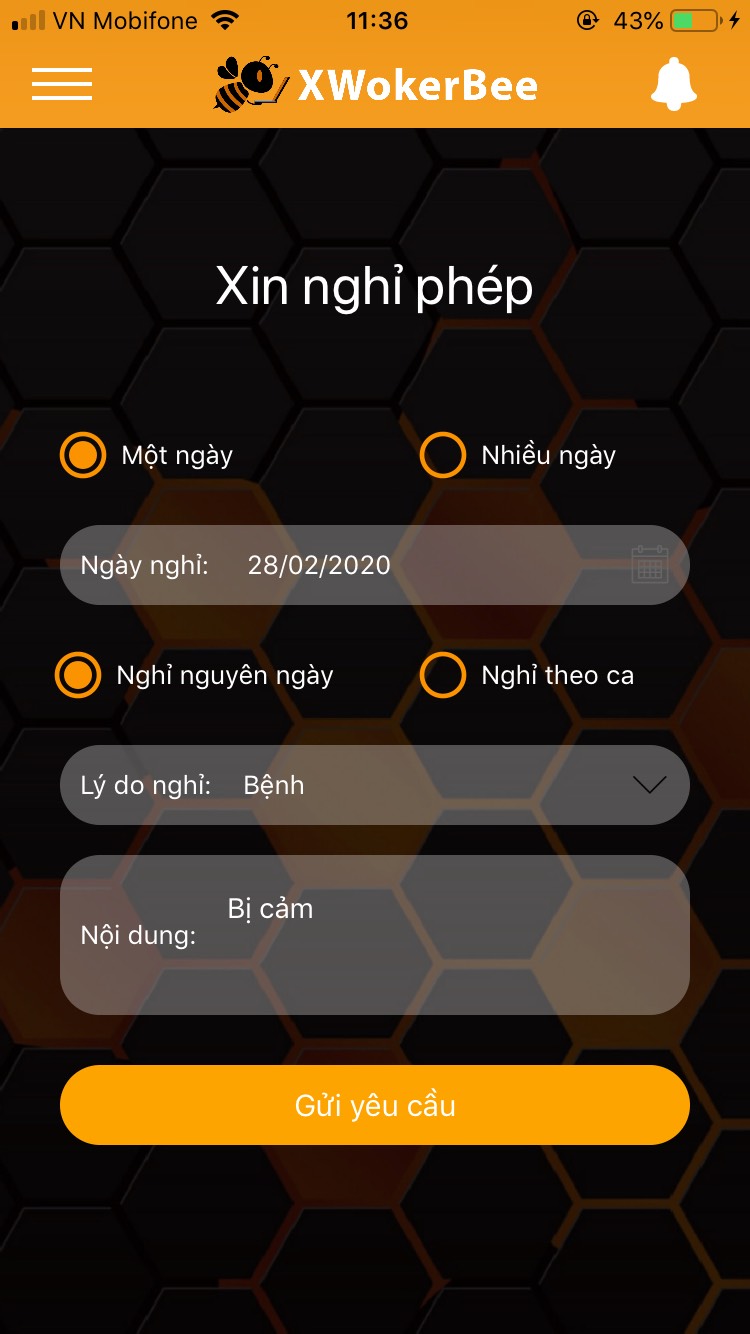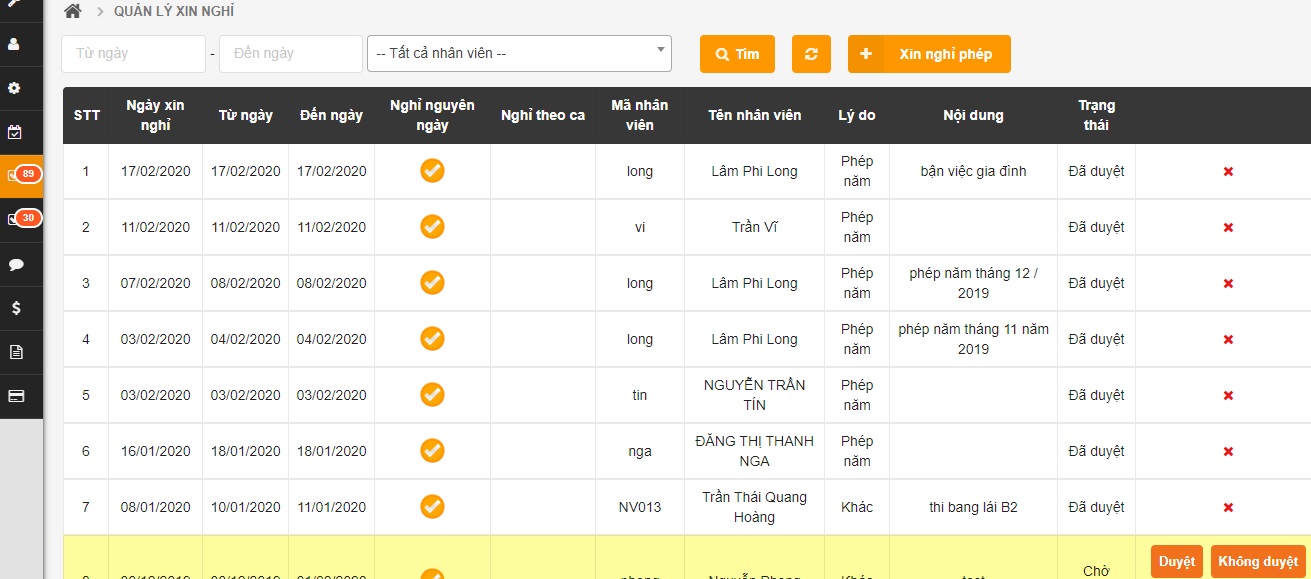 Nhân viên sử dụng app để xin nghỉ phép, admin sẽ nhận thông tin xin phép tại màn hình này và tiến hành duyệt cho nhân viên.