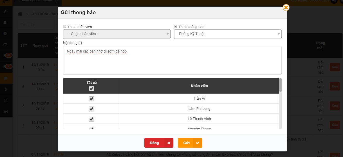 GỬI THÔNG BÁO CHO NHÂN VIÊN