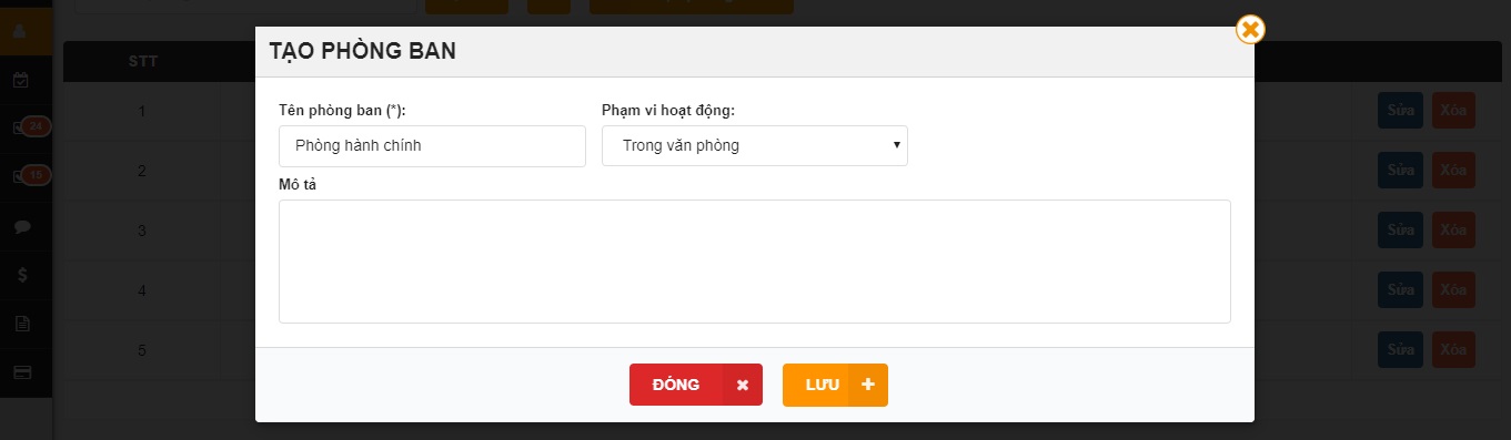 Bạn cần lưu ý tùy chọn phạm vị hoạt động của mỗi phòng ban.