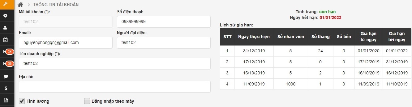 + Tính lương: Chọn để kích hoạt chức năng tính lương.